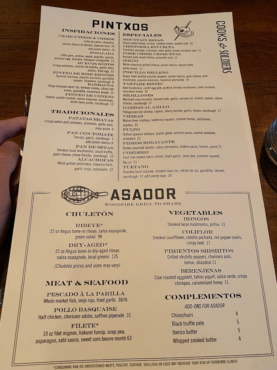 Cooks & Soldiers Menu
